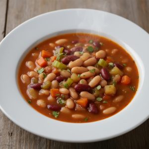 Картофель, Фасоль красная, Капуста белокочанная, Колбаса копченая, Майонез Провансаль, Паста томатная, Лук репчатый, Морковь свежая, Масло растительное, Зелень Ассорти, Сахар песок
