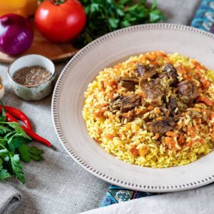 Свинина, Рис кругло зерновой, Морковь свежая, Масло растительное, Лук репчатый, Чеснок