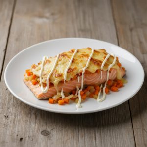 Филе горбуши С\М, Морковь свежая, Лук репчатый, Сыр Голландский, Майонез Провансаль, Масло растительное -